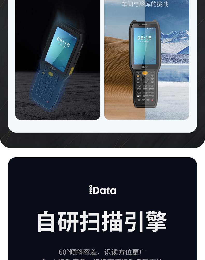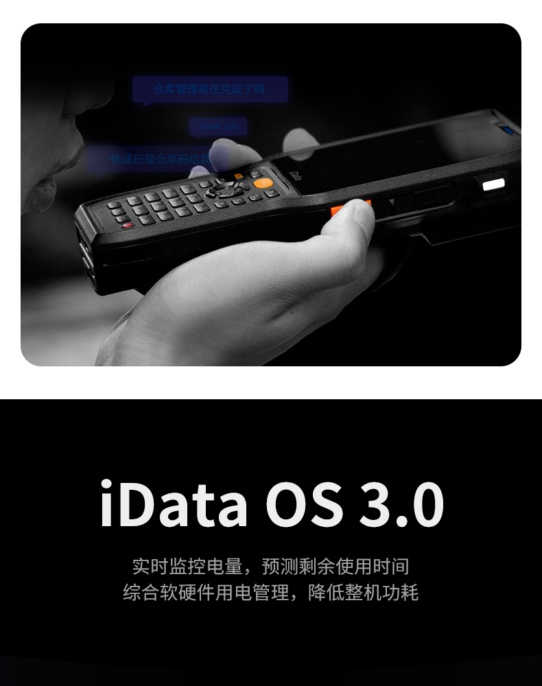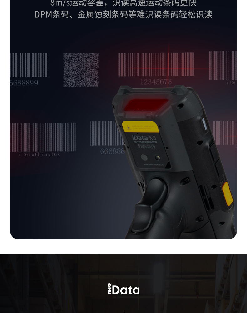 iData K8超強(qiáng)防護(hù)工業(yè)專用終端,防水、防塵、抗跌落、耐高低溫。為復(fù)雜場(chǎng)景而生,60°傾斜容差、8m/s運(yùn)動(dòng)容差,提供極致舒適掃描體驗(yàn)。支持21.4米遠(yuǎn)掃描引擎,大型倉(cāng)庫(kù)、高度貨架一掃即達(dá)。適用于倉(cāng)儲(chǔ)、物流等領(lǐng)域。